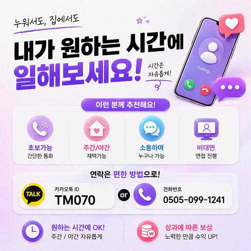 어려운 업무가 아니라서 대화 매너만 있다면 5분 만에 바로 시작하실 수 있습니다.